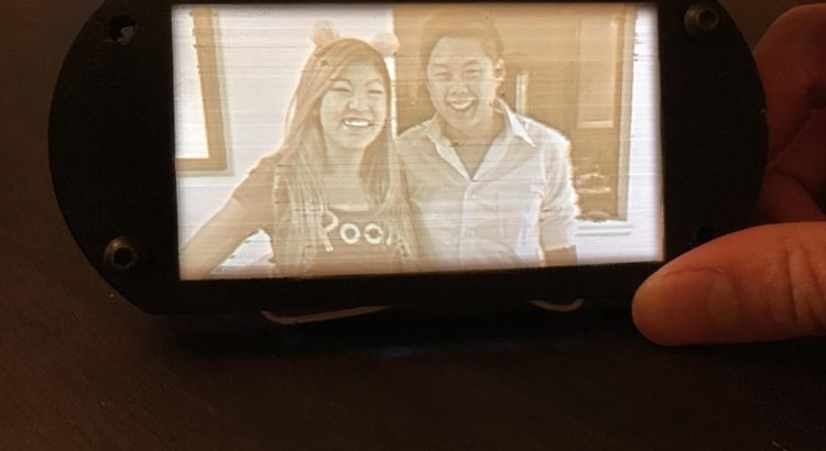 I continued playing around with lithophanes and made my sister a birthday present—a litphophane lamp shade! I found another online tool at: https://www.lithophanemaker.com/Lamp%20Lithophane.html. This one lets you enter various parameters to create an entire ready-to-print part very quickly. While I would design this part a bit differently if I were to do it from scratch, the speed of use was pretty undeniable.